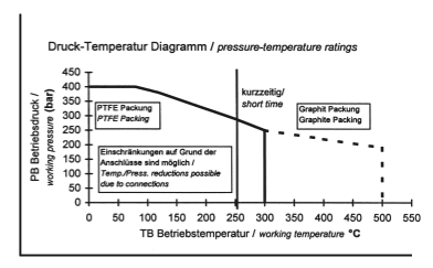 1) On request: graphite; max 550°C for all fittings or