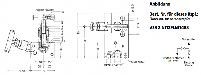 | type | body number | material code | inlet-code | outlet-code | test-/ blow out connection code | special characters code |