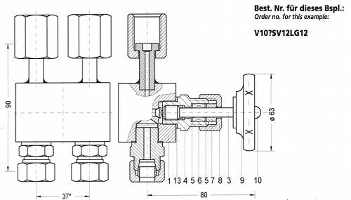 This manifold is only for zero-point / equalization of an differential pressure gauge. The connections and the connection-measures can be adjusted to the differential pressure gauge. |