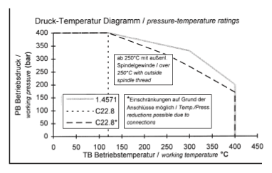 1) On request: ptfe-packing; max 200°C for all fittings or
