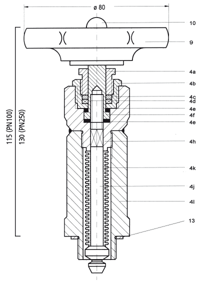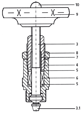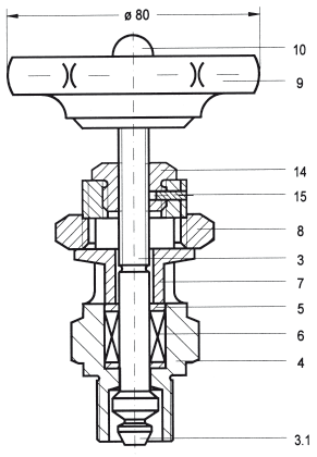 Contrary to the previous external spindle thread the packing can be pulled tight here only with opened spindle (open valve).